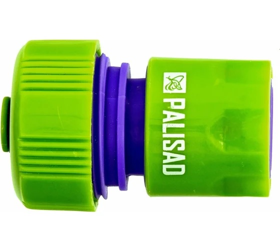 Пластмассовый быстросъемный соединитель Palisad 66165 с клапаном «аквастоп» совместим со шлангами диаметром 3/4"" и позволяет подключать их к распыляющим насадкам. Будет полезен при монтаже системы орошения на дачном участке.