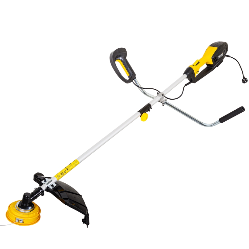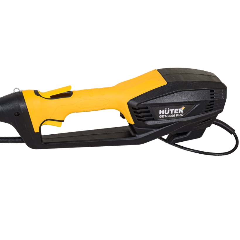 Электрический триммер Huter GET-2000 PRO стоит купить для скашивания травы на садовом дачном участке, кошения жестких многолетних сорняков, Комплектация: леска / дисковая фреза. Ручка велосипедная, и на нее вынесены все кнопки управления электротриммером. Питание электрокосы Хутер от обычной электросети 220 вольт. Номинальная мощность электромотора 2000 Вт. Режущий инструмент сменный: леска 2 или 3 мм, диаметр кошения составляет 420 мм. Дисковая фреза может срезать дикорастущие деревья диаметром до 10 см. Частота вращения - до 7600 оборотов в минуту. Штанга разъемная. Электродвигатель находится в верхней части косы. Купить электрический триммер Huter GET-2000 PRO стоит для загородного дома, кошения простого, естественного газона, сухой, высокой травы, сорняков и даже молодой поросли дикорастущих кустарников.