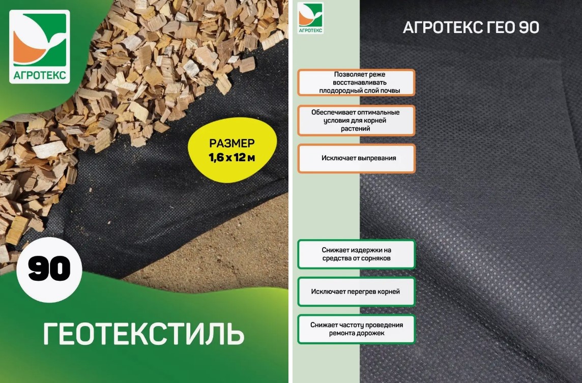 Нетканый материал для ландшафтных работ «Агротекс Гео 90 УФ» предназначен для обустройства различных элементов ландшафта: цветников; газонов; альпинариев; посадочных ям; компостных ям; садовых дорожек; облегчённых парковок. Также материал используют для разделения слоёв грунта, защиты гравия, почвы и песка от смешивания, проседания и размывания. Кроме того, «Агротекс Гео УФ» подходит для мульчирования хвойных и декоративных растений.