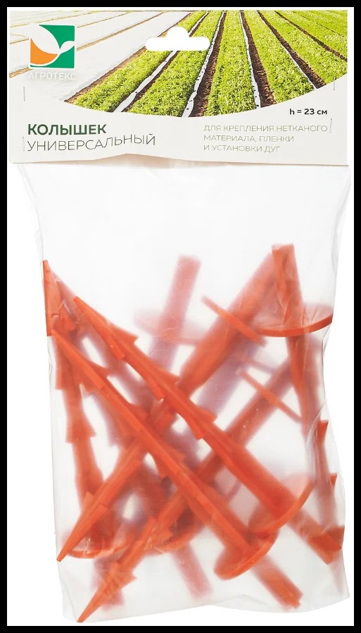 Применяются для крепления укрывного и мульчирующего материала, а также колья предназначены для крепления пластиковых дуг с внутренним диаметром ~ 1,6 см. Стандартная упаковка включает в себя 10 кольев. Колья имеют длину 23 см, на стержне есть специальные зазубрины, которые лучше удерживают их в земле. Возможно нестандартное применение кольев: фиксация походных палаток, установка в качестве ярких маячков при организации поливочных работ (удобно разделять территорию на сектора), а также для обозначения маленьких объектов или растений, для которых существует риск повреждения при стрижке газона.