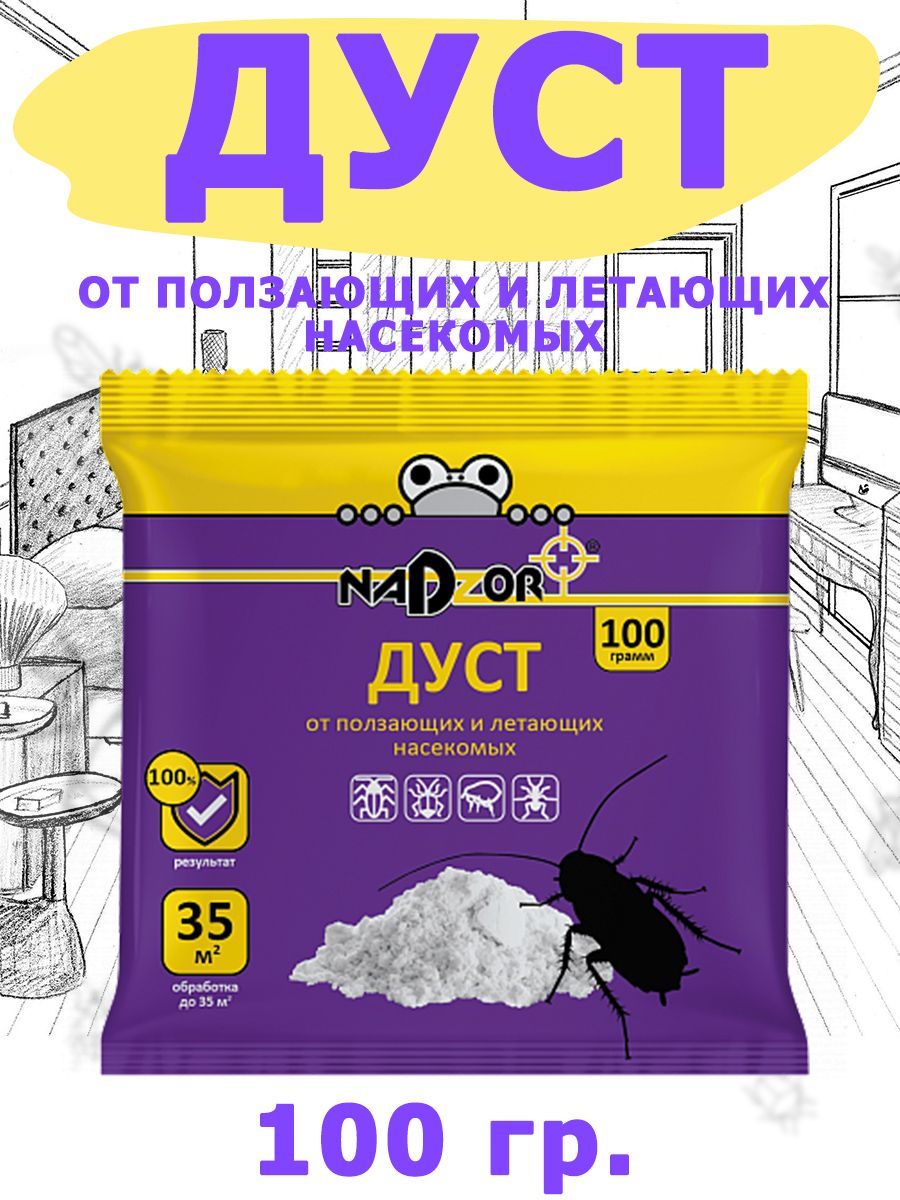 Дуст – это мощное средство против насекомых в форме порошка. Борется с большинством известных летающих и ползающих насекомых. Предназначен для уничтожения тараканов, муравьев, блох, мух, клопов и крысиных клещей в любых сухих помещениях, включая жилые. Насекомые погибают через несколько часов после контакта с поверхностью, на которую был нанесен Дуст.