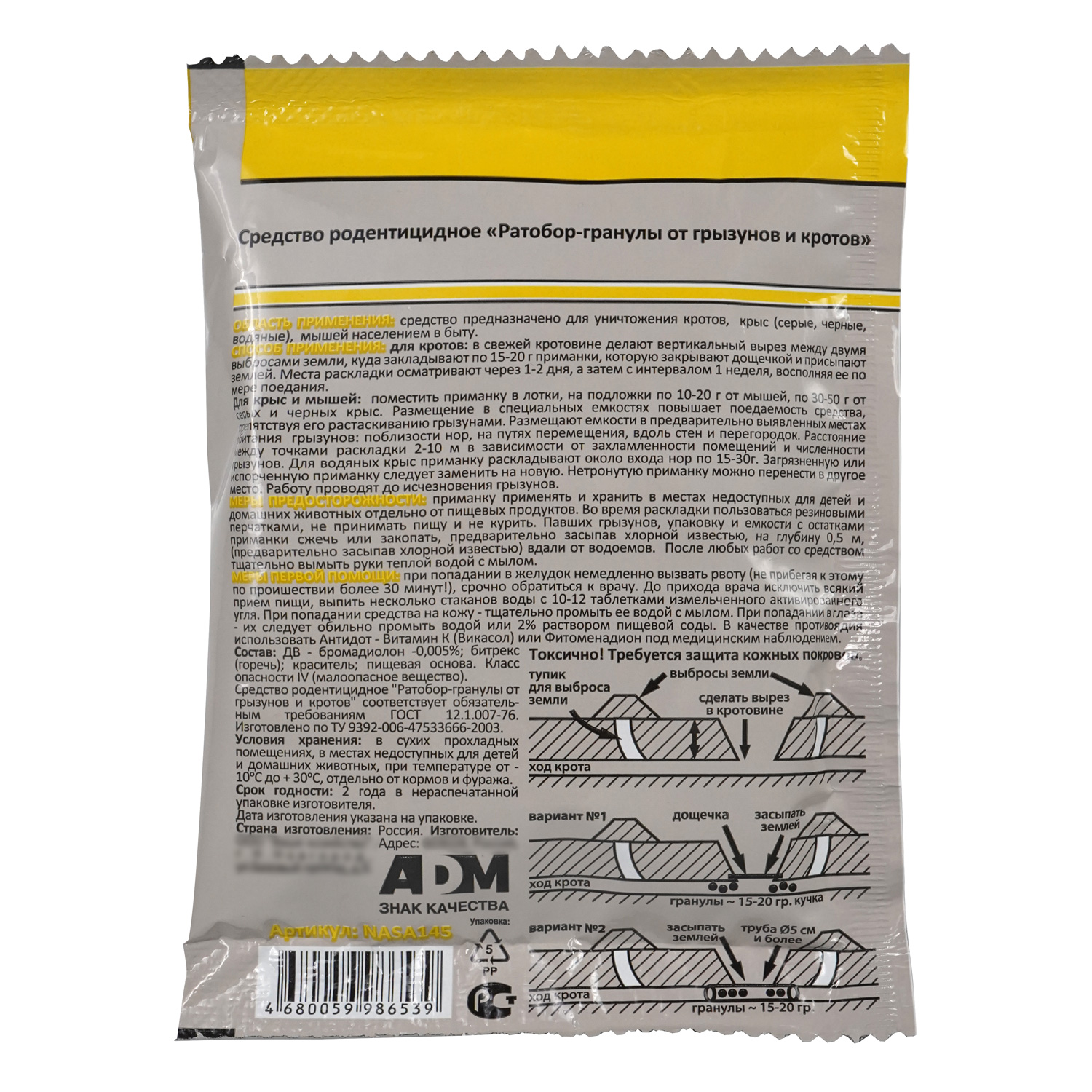 Эффективное средство в борьбе с земляными вредителями. Приманка очень привлекает кротов своими уникальными вкусовыми характеристиками, что приводит к быстрому сокращению популяции кротов на участке. Одной упаковки хватает для обработки двух кротовин.