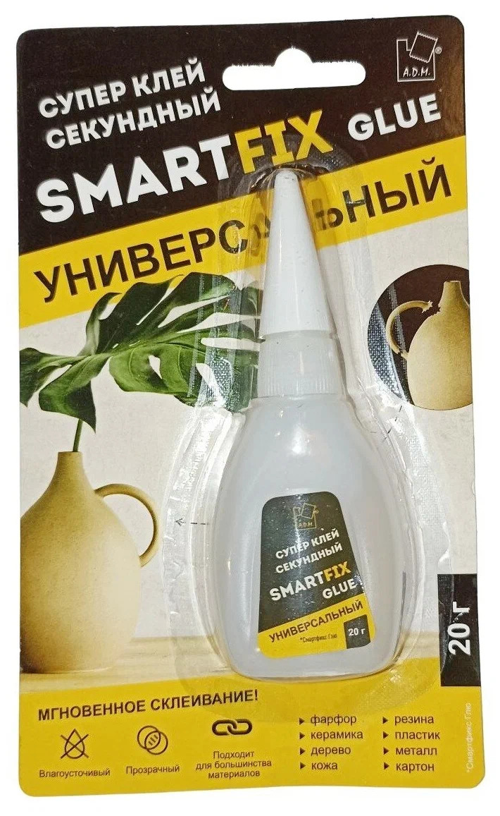 Супер-клей SmartFix представляет собой универсальный продукт, который используется для мгновенного соединения самых разных материалов и обеспечивает моментальное склеивание самых разных сочетаний фарфора, керамики, резины, дерева и даже металла. Он может использоваться во время проведения мелких ремонтных работ по дому или в офисе компании, на даче и в дальней поездке, а также везде, где требуется обеспечить сверхпрочное мгновенное склеивание. Супер клей отлично подойдет для работы с непористыми и гладкими поверхностями.