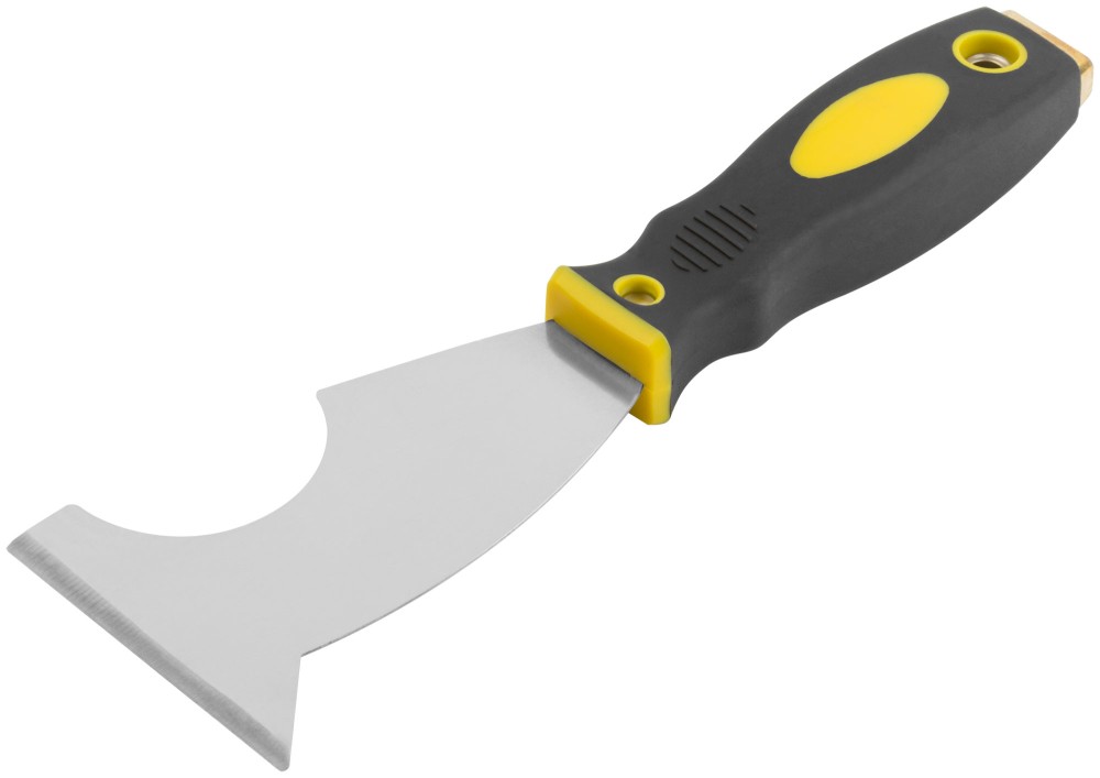 Профи. Многофункциональный. Твёрдое лезвие из полированной усиленной стали HRC 72-78, заточенная грань, мягкая двухкомпонентная ручка с металлическим бойком.