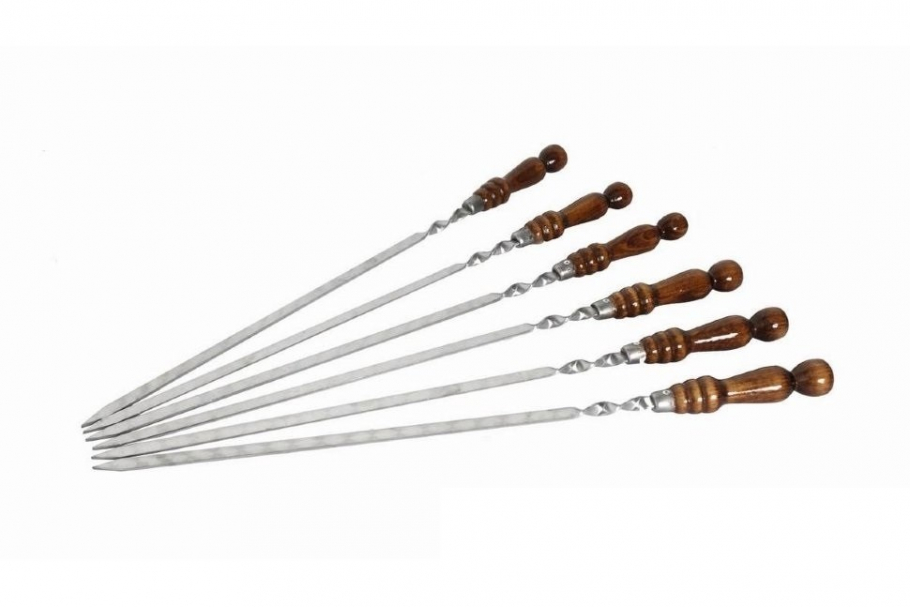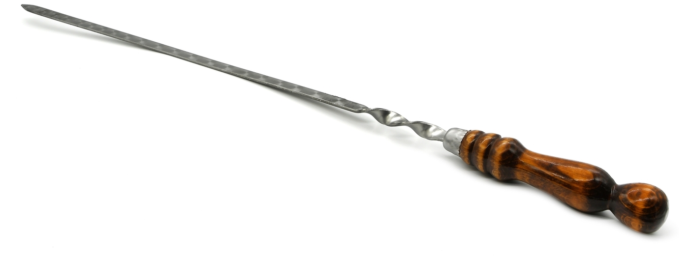 Шампур из нержавеющей стали толщиной 3 мм с деревянной ручкой. На ручке сделана заклепка для защиты ручки от огня и жара из мангала. Рабочая длина шампура 400-450 мм - Это длина только лезвия. Шампура из стали 3 мм удобны для больших кусков мяса, за счет толщины шампур не гнётся, а нагревшись начинает нагревать мясо внутри. Ручка шампура деревянная - удобная в обращении, покрыта лаком, эстетически - очень красивая, практически - долговечная.