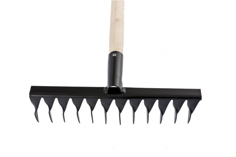 Стальные грабли «Сибртех» длиной 1300 мм, с 12 витыми зубьями, служат для уборки с газонов и грядок листвы и мусора, а также позволяют проводить аэрацию почвы. Некоторые особенности: Рабочая часть и тулейка изготовлены из конструкционной углеродистой стали, а зубья утолщены, поэтому грабли выдерживают большие нагрузки. Порошковое покрытие предотвращает появление коррозии, продлевая рабочий ресурс инструмента. Зубья имеют витую конфигурацию, поэтому эффективно разбивают комья земли и обеспечивают насыщение почвы кислородом.