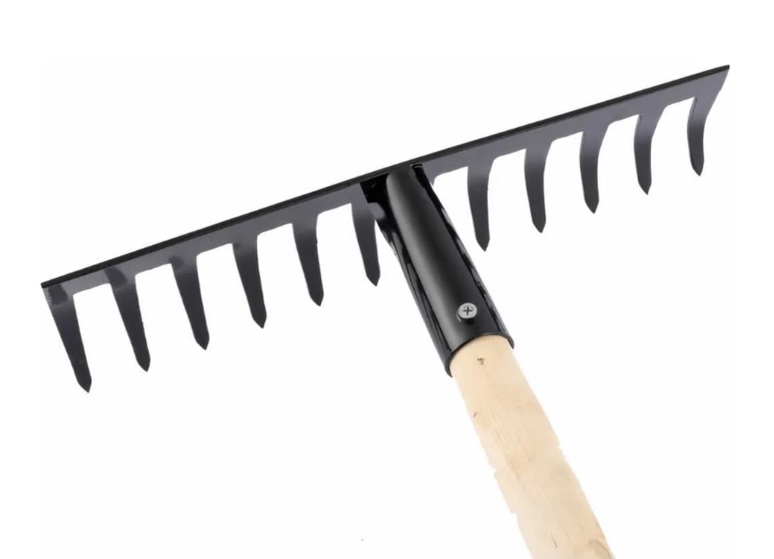 Стальные грабли «Сибртех» длиной 1300 мм, с 12 витыми зубьями, служат для уборки с газонов и грядок листвы и мусора, а также позволяют проводить аэрацию почвы. Некоторые особенности: Рабочая часть и тулейка изготовлены из конструкционной углеродистой стали, а зубья утолщены, поэтому грабли выдерживают большие нагрузки. Порошковое покрытие предотвращает появление коррозии, продлевая рабочий ресурс инструмента. Зубья имеют витую конфигурацию, поэтому эффективно разбивают комья земли и обеспечивают насыщение почвы кислородом.