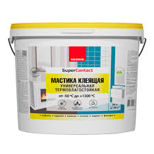 Мастика клеящая универсальная термовлагостойкая (высохший клеевой шов выдерживает температуру от -500 °C до +13000 °C). Предназначена для кладки и облицовки печей и каминов, склеивания кафельной и метлахской плитки, стекла, пенополистирольных потолочных плиток, дерева, картона, бетона, кирпича, натурального и искусственного камня (кроме материалов на гипсовой основе) в любых сочетаниях, неглубокой шпатлевки оштукатуренных и бетонных поверхностей, наклеивания фанеры на стяжку (кроме поверхностей, имеющих постоянный контакт с водой). При склеивании материалов имеющих периодический контакт с водой, для швов использовать влагоустойчивые герметики или затирки. Содержит антисептические добавки. Препятствует образованию плесени и грибов.