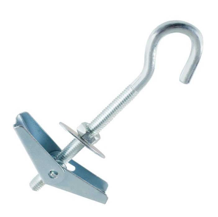 В плите перекрытия высверлить отверстие в пустой канал лепестки дюбеля прижать пальцами к его основанию и завести в канал, где лепестки раскрываются под действием пружины и фиксирутся в раскрытом положении, перекрывая собой диаметр крепежного отверстия для надежной фиксации дюбель затянуть гайкой