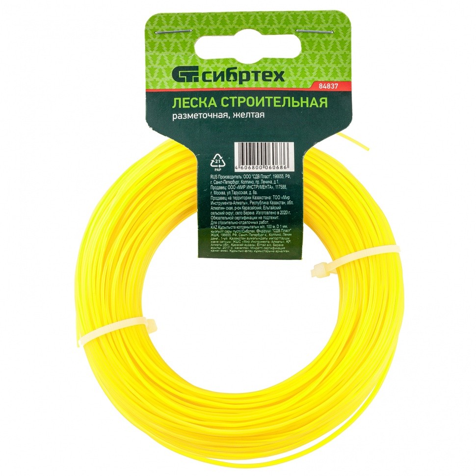 Леска строительная разметочная жёлтого цвета длиной 100 м предназначена для разметки и обозначения ориентира-направляющей при проведении различных строительных работ. Также такую леску используют в садоводстве для разметки садовых участков. Леска «Сибртех» применяется в качестве ориентира во время кладки камня, кирпича, при монтаже различных конструкций и проведении предварительных измерений.
