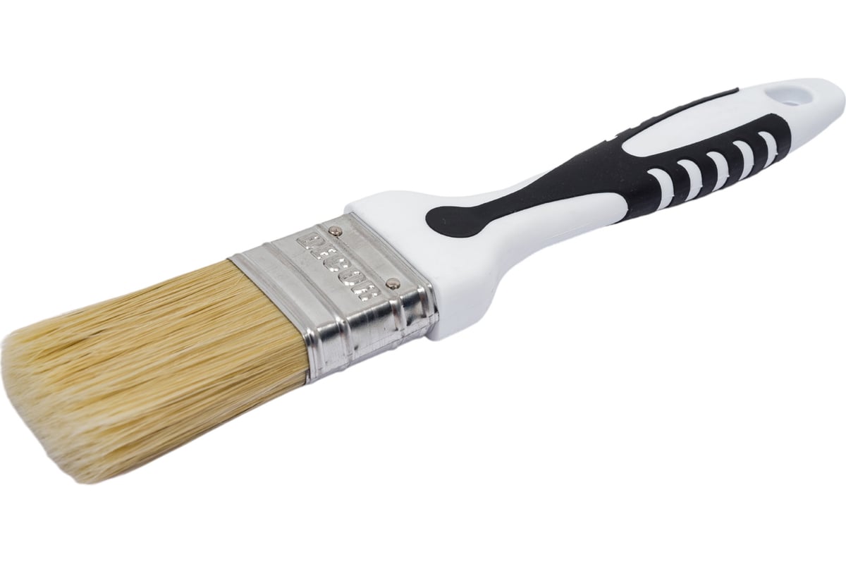 Кисть DECOR Black White универсальная 50х15мм, светлая смешанная щетина, 2К ручка 880-050 подходит для водорастворимых лаков и красок. Модель оптимальна для прокрашивания больших площадей.Удобная рукоять обеспечивает надежный хват при минимальных усилиях. Специальный профиль облегчает удержание для комфортной продолжительной работы.