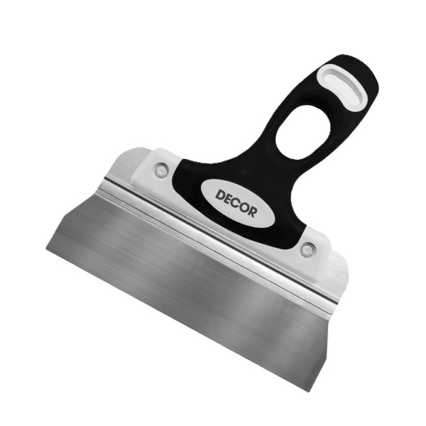 Шпатель из нержавеющей стали толщиной 0,4 мм. Длина полотна 600 мм., ширина полотна 45 мм. Двухкомпонентная эргономичная ручка с отверстием под большой палец.