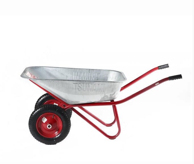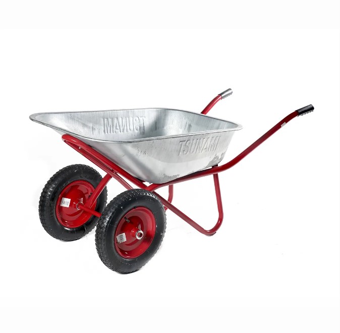 Тачка строительная с пневматическими колёсами TSUNAMI предназначена для перевозки сыпучих материалов, вывоза мусора, снега и других грузов.