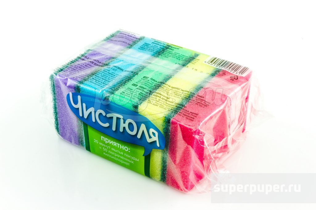 Губка Чистюля универсальная MAXI, повышенной прочности. Предназначена для мытья посуды, раковин, плит и т.д. Мягкий слой для деликатного мытья, жесткий для сильных загрязнений. Состав: поролон, абразивный материал.