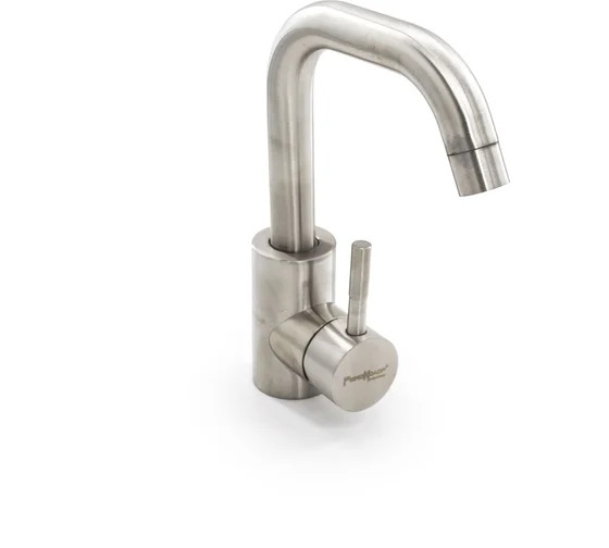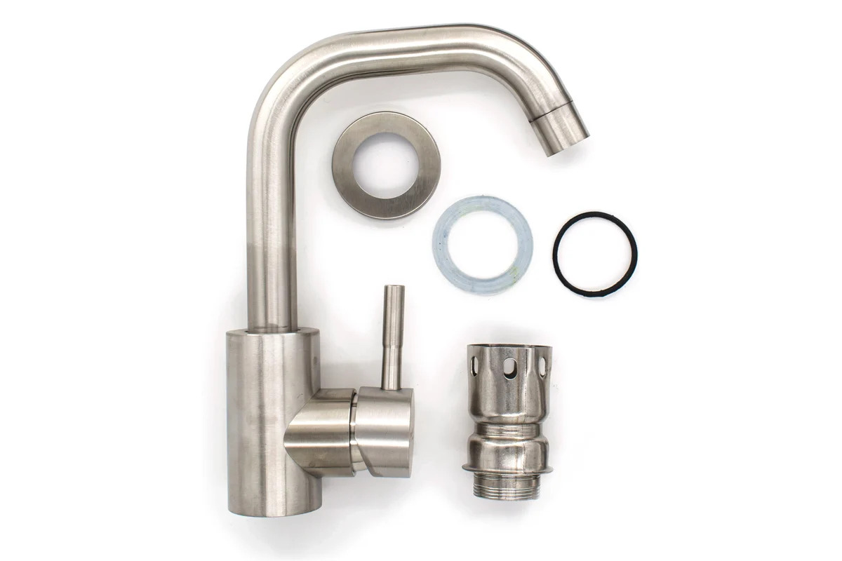 Смеситель позволяет регулировать поток воды и получать воду требуемой температуры при смешивании горячей и холодной воды, изготовлен из нержавеющей стали. Смеситель однорычажный, крепление гайка, картридж 40 мм.