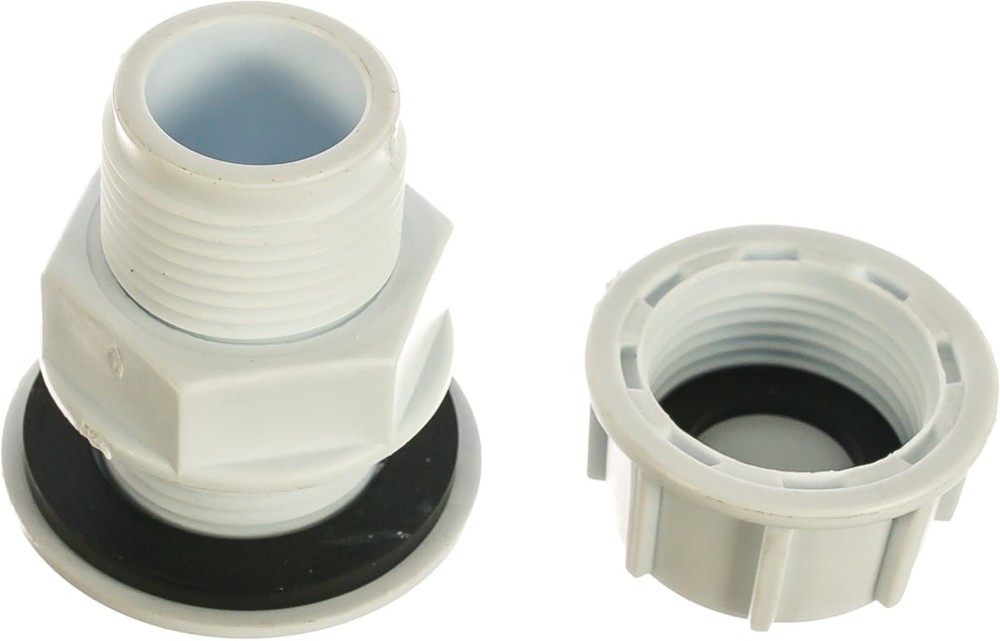 Штуцер, врезка в бак (емкость), с прокладкой 3/4 пластик MasterProf MP-У ИС.130838 служит для соединения резьбовых фитингов и устройств с корпусом пластикового бака. Обеспечивает герметичную врезку.
