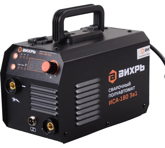 Сварочный аппарат инверторный полуавтоматический ИСА-180 3в1 Вихрь — это инновационное устройство, выполненное по современной IGBT-технологии и объединяющее в себе три режима сварки: MMA — ручная дуговая сварка, которая позволяет производить сварку с помощью штучных электродов. FCAW — полуавтоматическая сварка самозащитной порошковой проволокой, обеспечивающая непрерывную подачу присадочного материала для более эффективной сварки. TIG Lift — это аргонодуговая сварка, при которой сварка выполняется с использованием неплавящегося вольфрамового электрода и защитного газа (аргона). Этот многофункциональный аппарат предоставляет пользователю максимальную гибкость в выборе метода сварки в зависимости от текущих потребностей. Широкий диапазон регулировки сварочного тока позволяет подобрать необходимые параметры для работы с металлами разной толщины и типа.