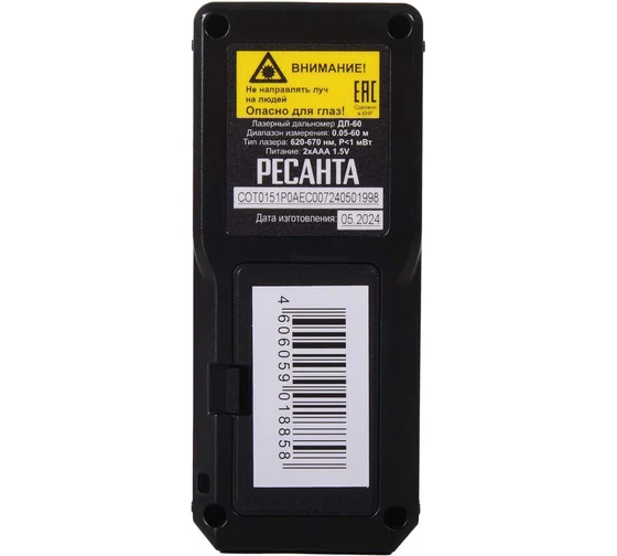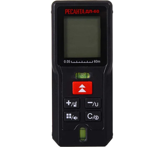 Лазерный дальномер Ресанта ДЛ-60 — это удобное, компактное и лёгкое устройство для быстрого и точного измерения расстояний от 5 см до 60 м с точностью до 2 мм (шаг 1 мм) с помощью лазерного луча. Он позволяет рассчитать площадь и объём помещений, уклон крыши, площадь стен и высоту сооружений. Работает от двух батареек ААА (1,5 В), имеет память на 20 измерений, функцию автоматического отключения (через 30 секунд бездействия лазера и 3 минуты работы устройства) и возможность суммирования/вычитания значений. Подходит для использования в строительстве, сельском хозяйстве и быту, упрощая работу и сводя к минимуму количество ошибок.
