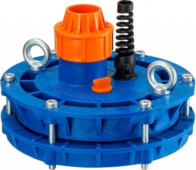 Оголовок скважинный ОСП 110-133/32 применяется для герметизации устья скважины с наружным диаметром обсадной трубы от 110 до 133 мм, с установленным внутри нее насосом, полиэтиленовой напорной трубой диаметром 32 мм, и используется в случаях, когда необходимо: защитить скважину от попадания в нее поверхностных, грунтовых вод и посторонних предметов; повысить надежность подвешивания насоса; упростить эксплуатацию технического колодца.