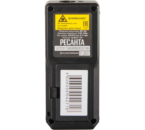 Цифровой лазерный дальномер Ресанта ДЛ-100 обеспечит качественное высокоточное измерение расстояний, произведение расчетов для выполнения различных строительных, ремонтных и других работ. Устройство позволяет производить замеры расстояния в одиночку без привлечения помощников. Измерения производятся с помощью лазерного луча в диапазоне 0,05-100 м с точностью до 2 мм. Угол наклона может быть любым. После включения устройство самостоятельно измеряет расстояние, может рассчитать объем или площадь помещения, выполнить сложение или вычитание. Встроенная память модели рассчитана на 20 значений. С помощью дальномера можно определить высоту здания, вычислить общую площадь комнаты, поверхности стен, длину уклона крыши, разметить отрезки равной длины на объекте. Лазерный дальномер работает от 2 обычных батареек ААА. При отсутствии дальнейших манипуляций лазерный луч отключается через 30 с, автоматическое выключение прибора осуществляется через 3 мин. Модель имеет подсветку дисплея, подходит для эксплуатации в темноте. Её можно использовать на улице при температуре воздуха от 0 до +45 градусов. Легкая, компактная, сверхточная модель Ресанта ДЛ-100 пригодится строителям, ремонтникам, туристам, работникам сельского хозяйства, дачникам и всем, кому нужно быстро произвести замеры без посторонней помощи.
