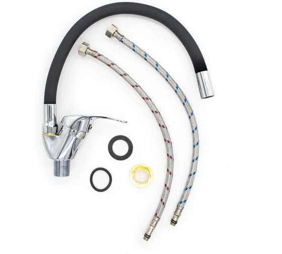 Смеситель усиленный однорычажный для кухни, гайка, рефлектор, черный, керам. картридж 40мм, Ремоколор 67-0-738- Смеситель позволяет регулировать поток воды и получать воду требуемой температуры при смешивании горячей и холодной воды, изготовлен из цинкового сплава. Смеситель однорычажный в комплекте с гибкой подводкой. Крепление гайка, картридж 40 мм.