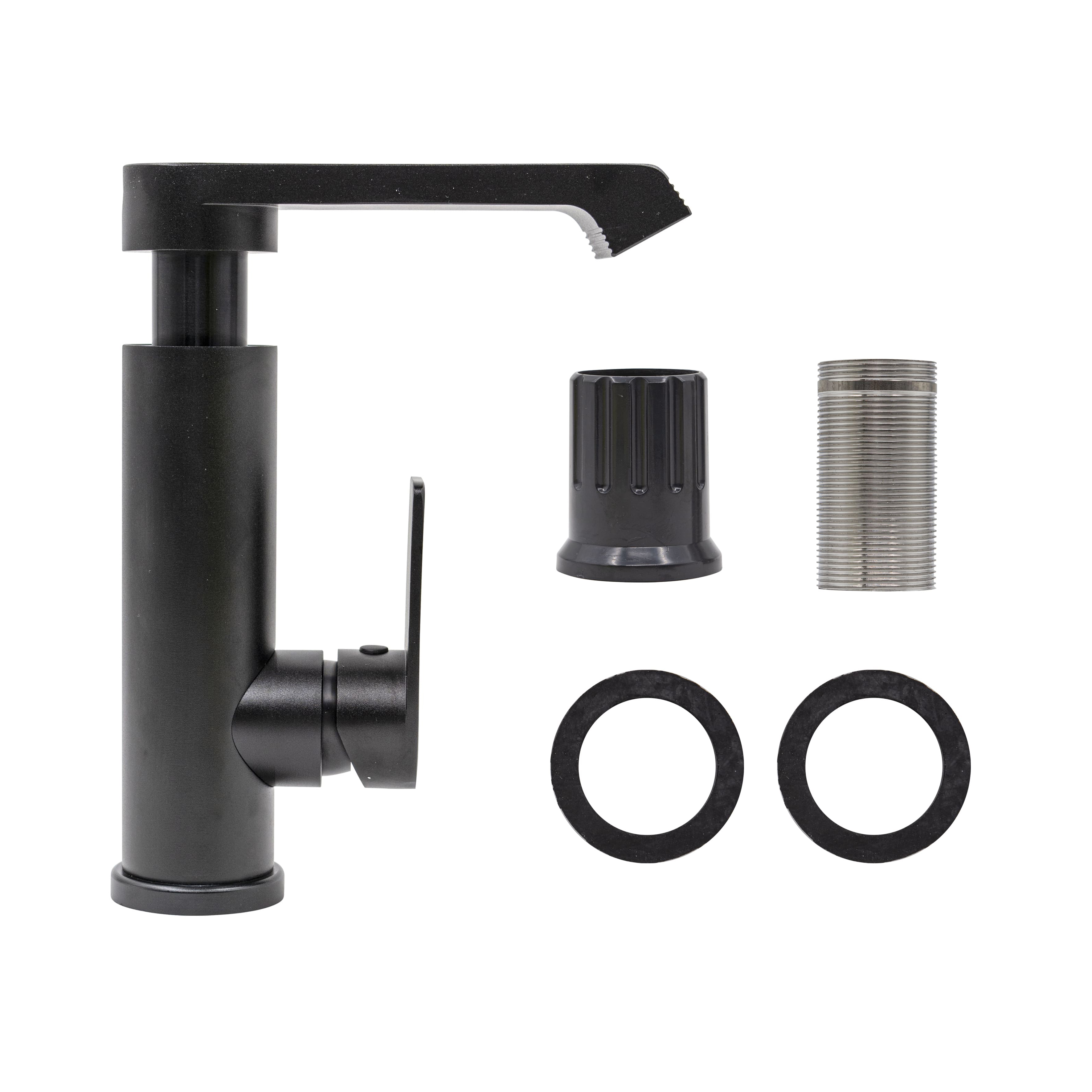 Смеситель позволяет регулировать поток воды и получать воду требуемой температуры при смешивании горячей и холодной воды, изготовлен из усиленного алюминия. Смеситель-трансформер однорычажный для кухни. Крепление гайка, высокий регулируемый излив, картридж 35 мм.