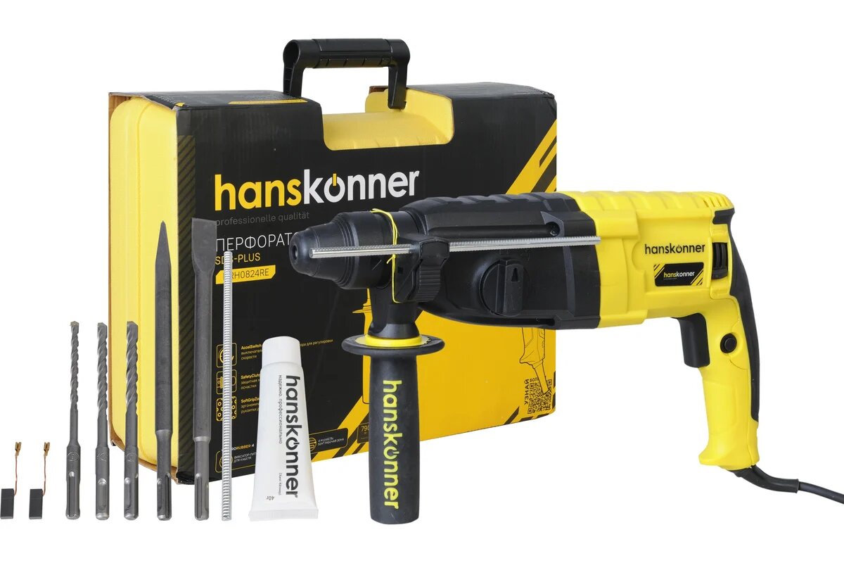 Перфоратор SDS Plus Hanskonner HRH0824RE — инструмент, сочетающий мощность и компактность. Основные задачи: снятие старых настенных покрытий, сверление отверстий в дереве, пластике, металле, кирпиче, композите или бетоне.