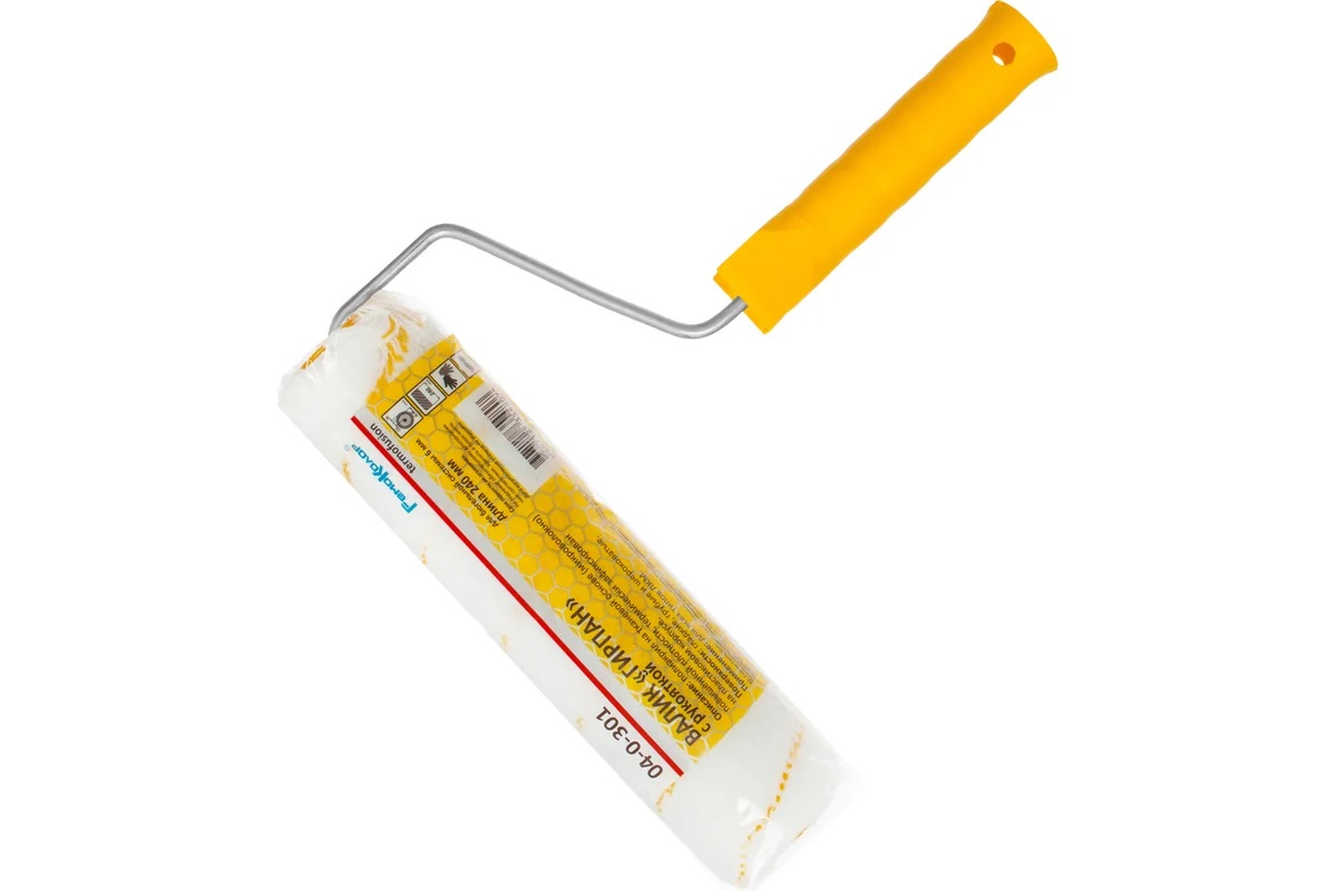 Валик малярный с рукояткой "Гирпан" из полиакрила. Микроволокно на тканевой основе термически зафиксировано на пластиковом корпусе. Подходит для всех типов лакокрасочных материалов. Ширина валика составляет 240 мм, диаметр – 40 мм. Высота ворса -12 мм. Подходит для шероховатых, гладких и грубых поверхностей.