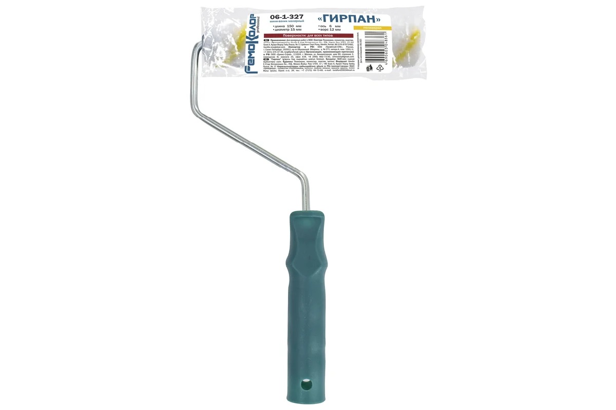 Мини-валик малярный с рукояткой "Гирпан", ось 6мм, D15мм, 150мм. Мини-валик "Гирпан" в сборе с ручкой 6 мм, роликом 150 х 15мм, длиной ворса 12 мм из полиакрила, предназначен для проведения малярных работ. Валик повышенной износостойкости можно использовать для нанесения любых ЛКМ, в том числе содержащих агрессивные вещества, на поверхности с различной фактурой. На окрашиваемой поверхности не остается следов за счет бесшовной структуры и обработанных краев валика. Свободное вращение ролика обеспечивает высокий коэффициент отдачи краски на поверхность. Классическая конструкция валика с внутренней трубкой позволяет легко снимать и надевать его на бюгель для очистки или замены. Технология производства Termofusion Coinjection увеличивает рабочий ресурс валика и повышает эффективность окрашивания.