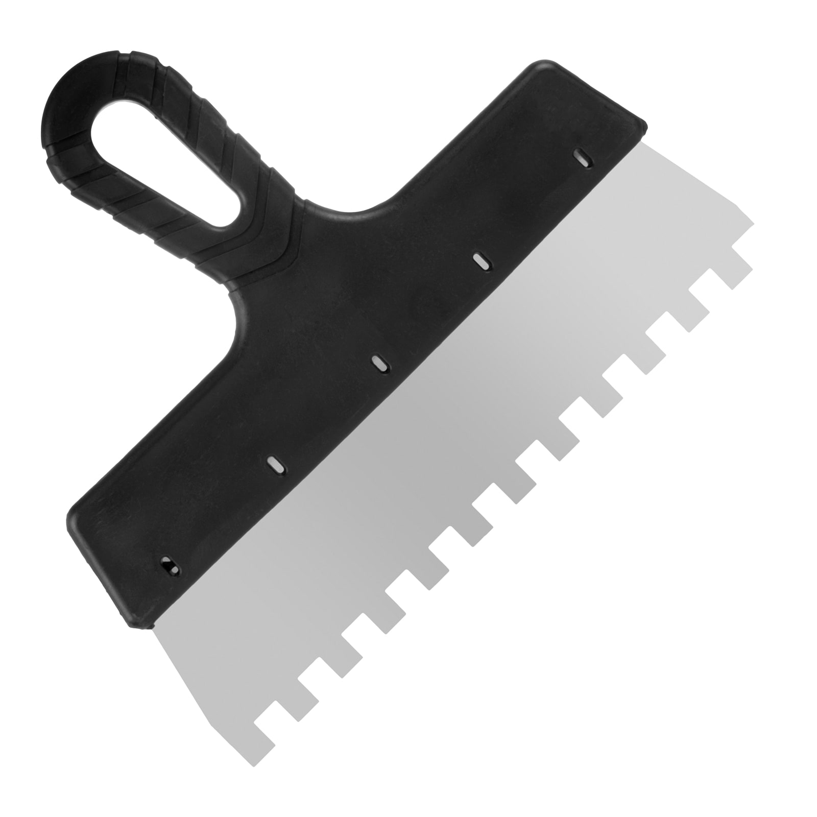 Шпатель фасадный «Мастер» предназначен для следующих видов работ: нанесение клеевых составов, цементных монтажных смесей при укладывании кафельной плитки, приклеивании стеновых панелей.