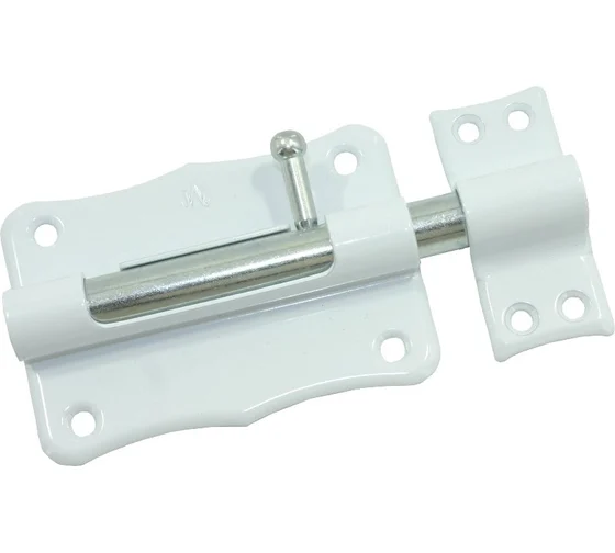 Задвижка накладная представляет собой классический шпингалет и пользуется большой популярностью. Изделия этого типа используются для запирания дверей в жилых домах, административных зданиях, на производственных объектах и т. п. Конструктивно шпингалет состоит из трех частей: корпуса, ригеля и ответной планки. Конструкция корпуса обеспечивает надежную фиксацию ригеля в закрытом и открытом положениях. Крепление корпуса и ответной планки осуществляется саморезами. Декоративно-защитное покрытие (полимер белый) в отличие от цинкового покрытия защищает изделия от коррозии в несколько раз дольше.
