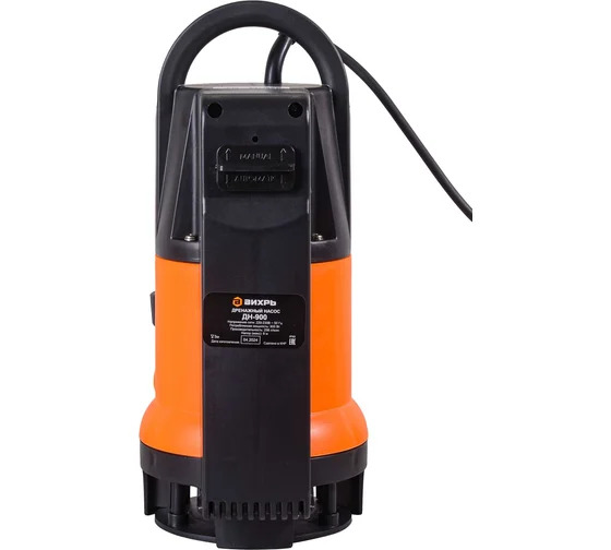 Модель Вихрь ДН-900 – дренажный насос, который обладает мощностью 900 Вт, обеспечивает подачу воды до 258 л/мин и напор до 8 м. В нём установлен однофазный двигатель, отличающийся надёжностью и большим рабочим ресурсом. Модель Вихрь ДН-900 предназначена для откачивания грязной воды из подвалов, забора воды для технических нужд из открытых водоёмов, водоотведения из сливных ям. Допустимый диаметр пропускаемых частиц составляет 35 мм. Диаметр выходного отверстия 1.5". Особенностью этого дренажного насоса является наличие в конструкции встроенного поплавка, что позволяет использовать агрегат в узких местах. Основной рабочий режим насоса автоматический. Предусмотрена также возможность функционирования агрегата в ручном режиме, когда насос работает при отключённом поплавковом выключателе, что обеспечивает откачку при минимальном уровне воды. Корпус выполнен из ударопрочного пластика. Конструкция герметичная. Степень защиты – IPX8. Параметры сети питания – 220 В, 50 Гц.