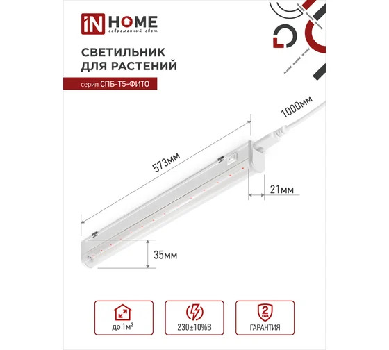 Светодиодный светильник – это линейный светодиодный светильник накладного типа с выключателем на корпусе, коннектором и креплением в комплекте. Модель используется для стимуляции роста растений (выращивания рассады, микрозелени, а также дополнительного освещения тропических цветов и других солнцелюбивых растений). Фитосветильник может применяться как для дополнительной подсветки, так и для полной замены естественного солнечного света. В отличие от люминесцентных аналогов, светодиодные светильники являются полностью экологически безопасными. Кроме того, использование светодиодов снижает испарение, увеличивая тем самым период между поливами. Площадь эффективного освещения у светильника мощностью 10Вт составляет 1 м².