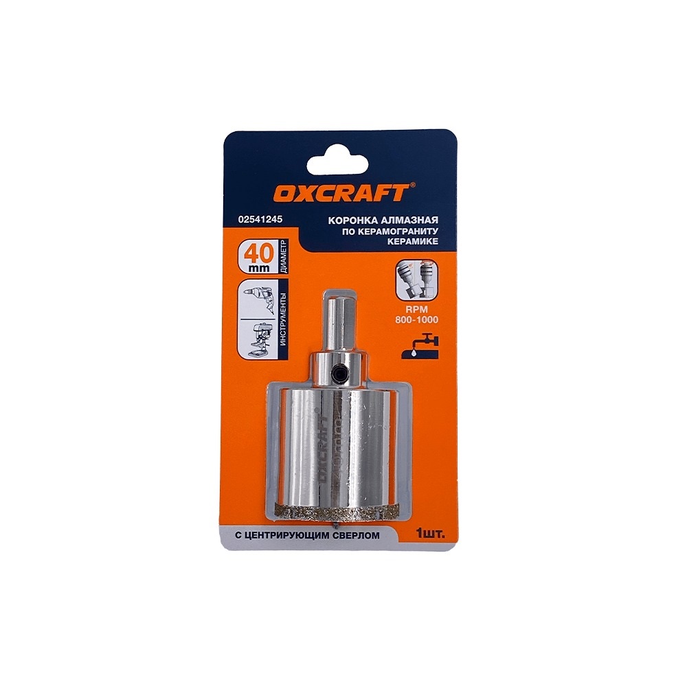 Коронка алмазная по керамограниту и керамике с центрирующим сверлом OXCRAFT 40 мм используется совместно с дрелью для сверления отверстий в кафеле, стекле, в изделиях из керамики и керамогранита. Максимальная глубина сверления: 40 мм; с центральным сверлом по стеклу; для сверления керамики; диаметр. 9,5 мм круглый хвостовик с 3 кромками; высота режущей кромки 6 мм; лазерная печать логотипа и размера на корпусе.