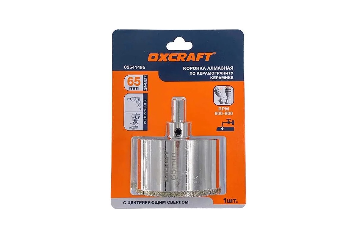 Коронка алмазная по керамограниту и керамике с центрирующим сверлом OXCRAFT 65 мм используется совместно с дрелью для сверления отверстий в кафеле, стекле, в изделиях из керамики и керамогранита. Максимальная глубина сверления: 40 мм; с центральным сверлом по стеклу; для сверления керамики; диаметр. 9,5 мм круглый хвостовик с 3 кромками; высота режущей кромки 6 мм; лазерная печать логотипа и размера на корпусе.
