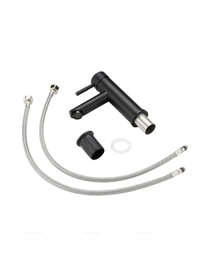 смеситель, комплект креплений, две гибкие подводки, инструкция, гарантийный талон и паспорт изделия