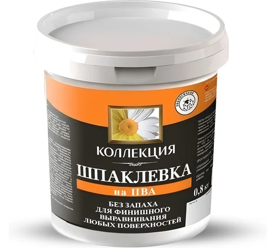 Шпаклевка на основе ПВА Коллекция - для финишного выравнивания любых поверхностей. Предназначена для: - выравнивания мелких дефектов и сплошного шпаклевания бетонных, оштукатуренных, кирпичных и других поверхностей перед окраской любыми видами красок и эмалей, оклейкой обоями. Подходит для: - Бетона. - Штукатурки. - Гипсокартона. - Стекломагниевых поверхностей. - Кирпича. - ДВП / ДСП. - Древесины. - Невпитывающих глянцевых поверхностей (старые лакокрасочные покрытия ПФ, МА, НЦ и т.п.). - Волокнисто-цементных плит, гипса. Преимущества шпаклевки на основе ПВА Коллекция: - Имеет высокую адгезию к основанию и малую усадку. - Образует очень твердое и крепкое, гладкое покрытие. - Хорошо шлифуется. - Удобна в нанесении. Технические характеристики: - Расход: до 1,5 кг/м² при сплошном нанесении слоем 1 мм. - Выдерживает 5 циклов кратковременного замораживания-оттаивания. - Срок годности: 24 месяца.