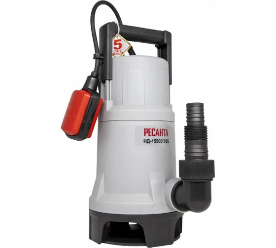 Ресанта НД-15500 представляет собой мощный дренажный насос. Выполняет функцию откачки воды из колодцев, подвальных помещений, стоков, котлованов с примесями. Допустим средний или даже сильный уровень загрязнения. При этом размер твердых частиц не должен быть крупнее 35 мм, чтобы не произошло поломки или засора. Ресанта НД-15500П/35 – это дренажный насос, отличающийся высоким напором. Устройство способно откачать жидкость до минимального уровня, благодаря мощности в 1100 Вт. При этом сила максимального напора в 10 метров гарантирует подачу в 258 л/мин. К преимуществам модели Ресанта НД-15500П/35 относят: Класс защиты IPX8 означает полную защиту от проникновения влаги с герметичным электродвигателем, прибор может на протяжении часов работать полностью погруженным в воду. В комплектацию дополнительно входят переходник, штуцер, паспорт устройства. Длина регулируется, что помогает осуществить откачку до нужного уровня. Электродвигатель асинхронный с короткозамкнутым ротором. Для избежания работы в режиме сухого хода модель оснащена автоматической поплавком для выключения при достижении определенного уровня. Максимальное количество включения не более 20 в час. Перед началом использования настоятельно рекомендуем ознакомиться с правилами эксплуатации прибора.
