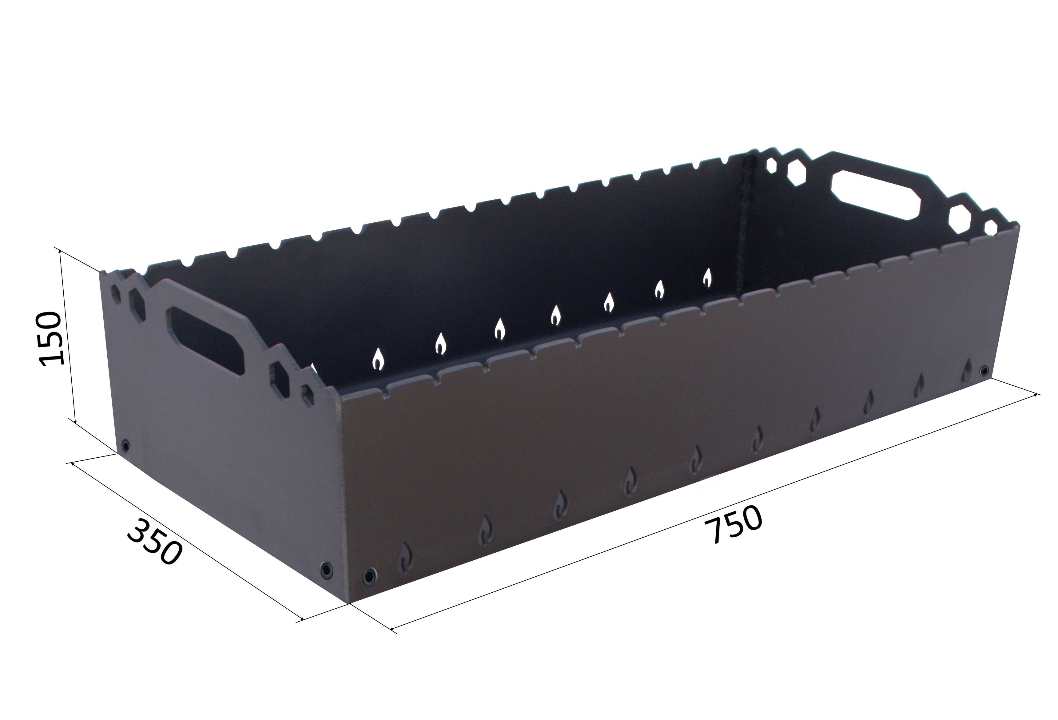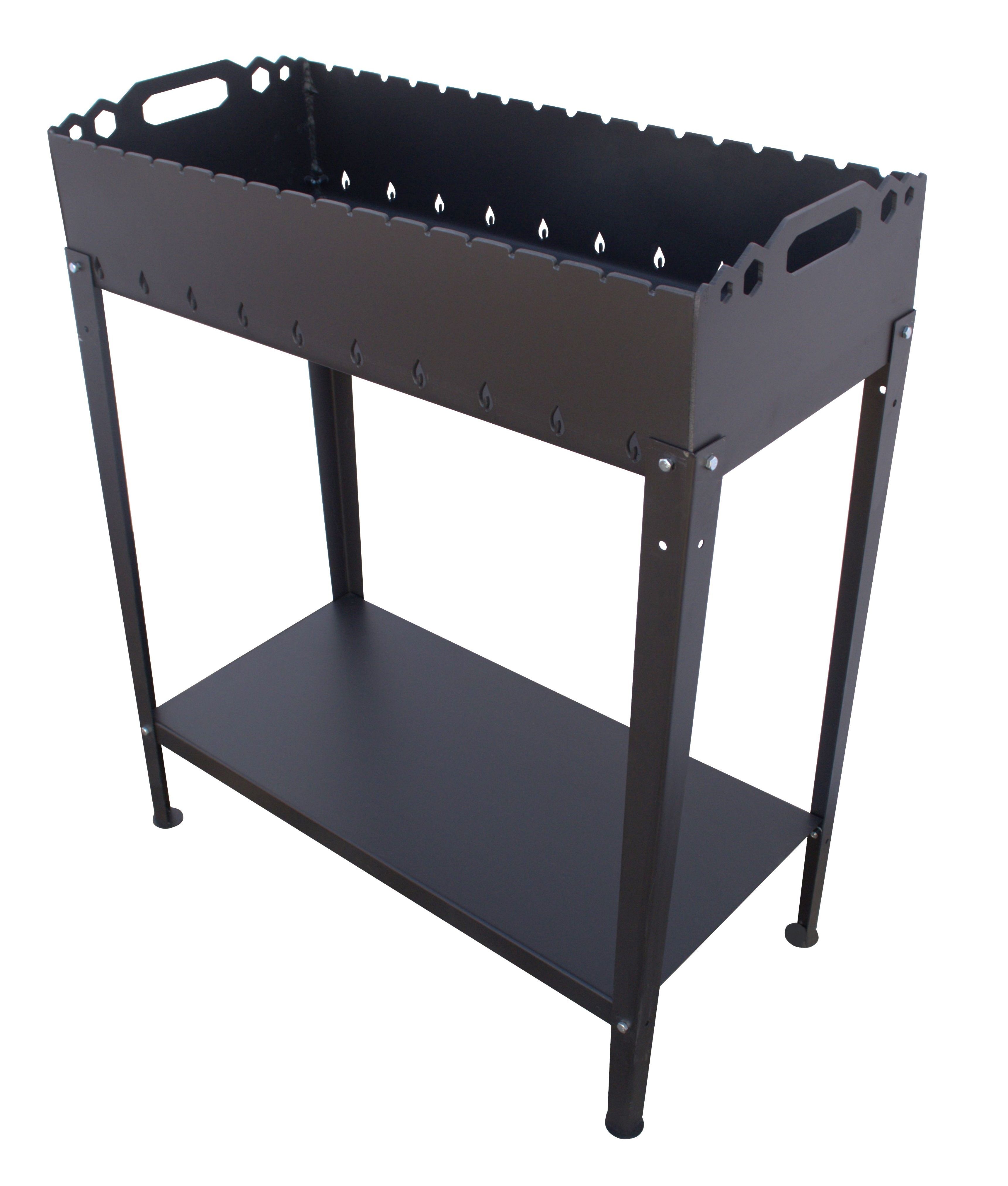 Мангал "Дачный" - это приспособление для получения углей и приготовления жареного мяса, рыбы, овощей и других продуктов на открытом воздухе. Он представляет собой жаровню прямоугольной формы с отверстиями для поддува и прорезями для шампуров. Для удобства использования мангал комплектуется четырьмя ножками и полкой, которые собираются на болтовые соединения. Все мангалы изготавливаются из листовой стали толщиной 4 мм, а это значит, что они прослужат Вам очень много лет. Сегодня мангал - любимое устройство, которое мы используем для приготовления шашлыков. Вокруг него организуется основное застолье во все праздники, которые мы проводим на природе или на даче с ранней весны и до поздней осени.