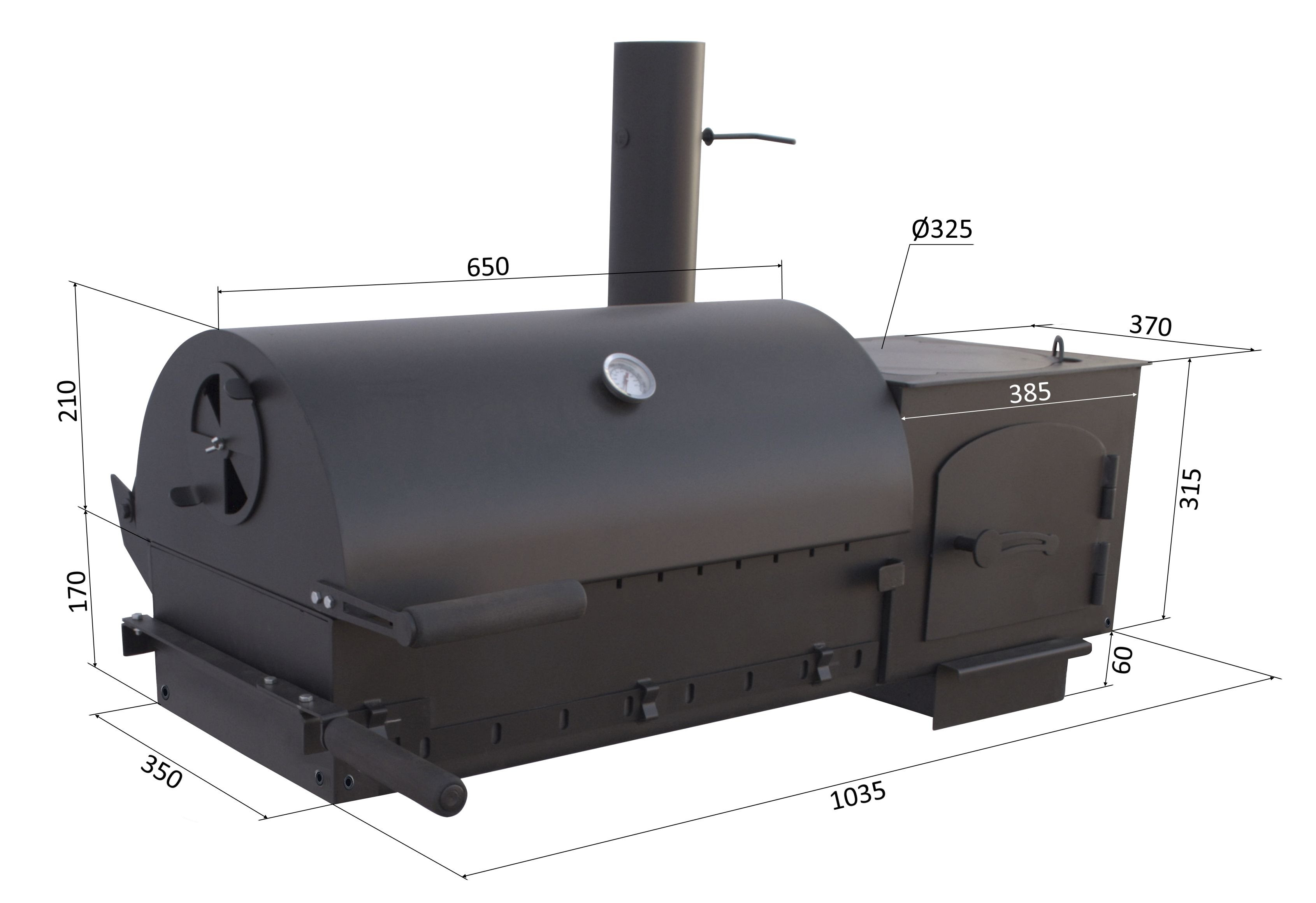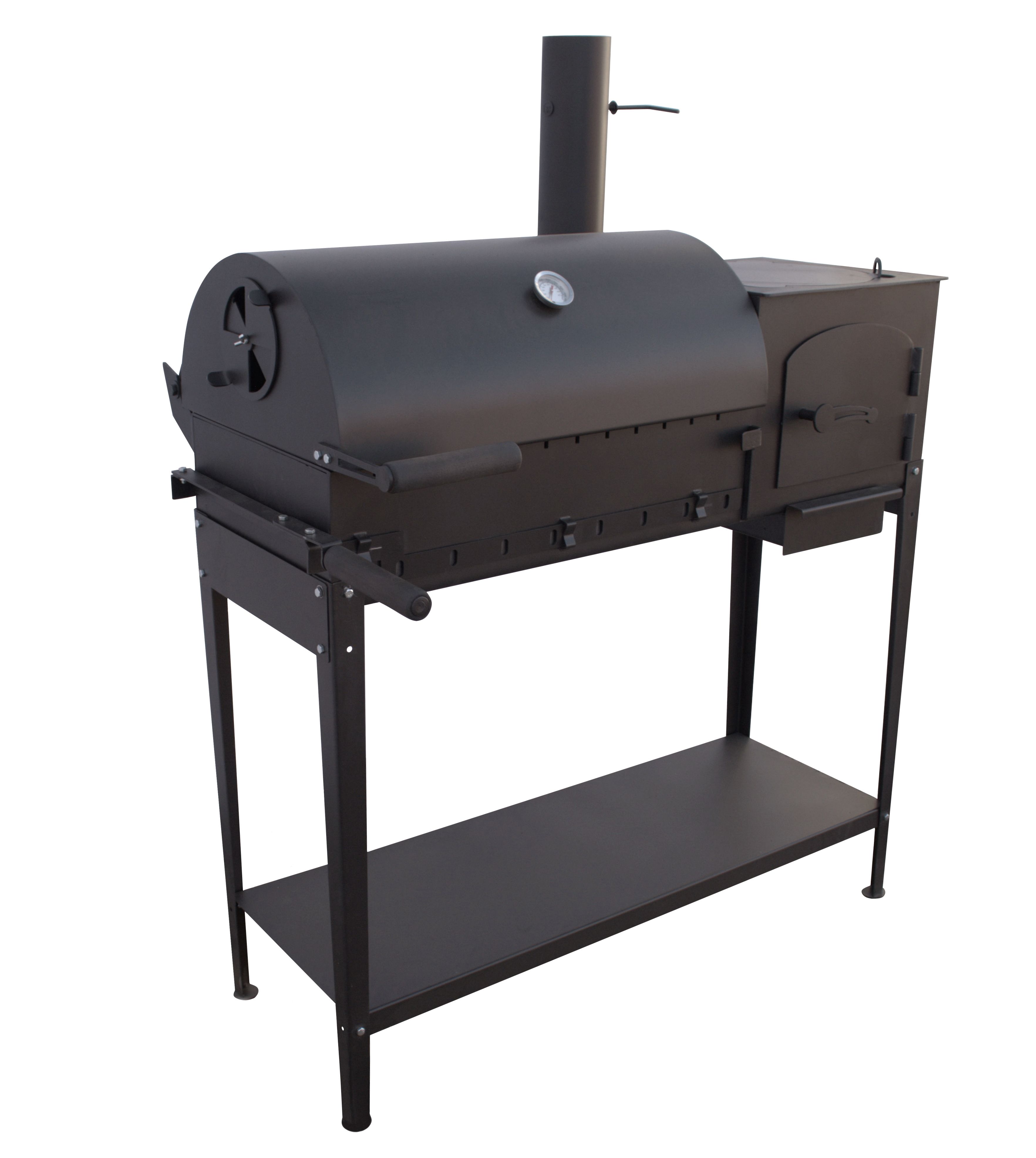Печь ПКМ-гриль является цельносварной конструкцией состоящей из печи под казан с патрубком дымохода и жаровни с крышкой. Жаровня оснащена прорезями для шампуров, отверстиями для поддува (регулируются с помощью шибера) и заслонкой, благодаря которой можно использовать угли из топки печи под казан. Сама печь имеет зольный ящик с выдвижным совком. В верхней части имеется отверстие с крышкой под казан объемом до 10л. Для удобства использования печь ПКМ-гриль комплектуется четырьмя ножками и полкой, которые собираются на болтовые соединения. Печь изготовлена из листовой стали толщиной 4мм , крышка жаровни - 2 мм и 1,5 мм, ножки и полка - 1,5мм. Окрашены термостойкой краской Certa черного цвета. Печь ПКМ-гриль является новой разработкой 2023 года, созданной с учетом многолетнего опыта и проверенной в реальных условиях.