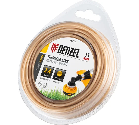 Армированная алюминием леска для триммера Denzel ALUFLEX 96830 круглого сечения, диаметром 2,4 мм и длиной 15 мм, в блистере, предназначена для скашивания густой травы и растений с толстыми стеблями. Отличается повышенной износостойкостью. Заправляется в катушку электрического триммера или бензотриммера с объемом двигателя 25-52 см3. Леска будет полезна владельцам дачных участков.