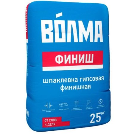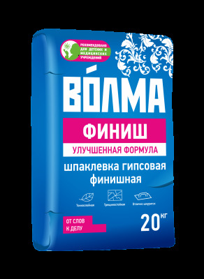 «ВОЛМА-Финиш» - сухая шпатлевочная смесь на основе натурального гипсового вяжущего с размером частиц менее 0,2 мм, минерального наполнителя и модифицирующих добавок, обеспечивающих трещиностойкость и повышенную адгезию.