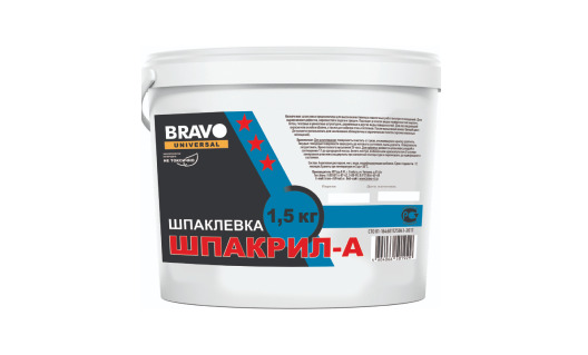Мелкозернистый, высокоэффективный выравнивающий шпакрил для высококачественных отделочных работ внутри помещений. Предназначен для выравнивания дефектов, неровностей и заделки трещин на кирпичных, бетонных, оштукатуренных, гипсовых, деревянных и других поверхностях. Для последующей окраски всеми видами красок и эмалей, оклеивания обоями и синтетическими пленками, а также как самостоятельное средство для окраски поверхности. После высыхания имеет белый цвет. Разведенный водой, подходит для побелки потолков и стен кистью. Идеально подходит под краски светлых и переходных тонов.