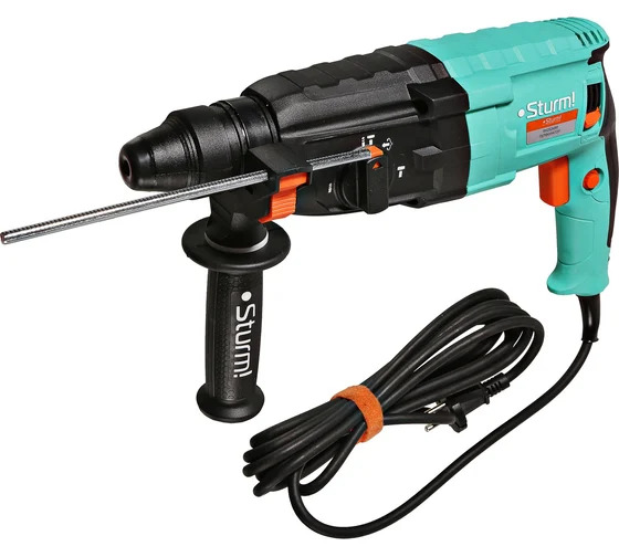 Мощный перфоратор, подходящий как для строительных работ, так и для домашнего использования, обеспечивает универсальность благодаря режимам удара, сверления, сверления с ударом и работы в качестве миксера. Быстрая смена оснастки осуществляется благодаря патрону SDS-plus. Удобство работы обеспечивается практичной установкой и фиксацией долота в любых угловых положениях. Переключение реверса поворотом щеткодержателя гарантирует одинаковую мощность в обоих направлениях вращения. Эргономичный ударопрочный нейлоновый корпус, устойчивый к низким температурам, оснащен задней рукояткой с резиновой противоскользящей вставкой. Функция фиксации клавиши пуска облегчает продолжительную работу. Дополнительная рукоятка с креплением для ограничителя глубины сверления легко регулируется одной рукой. Предохранительная муфта защищает инструмент и пользователя от заклинивания бура. Инструмент и аксессуары удобно хранить и переносить в пластиковом кейсе.