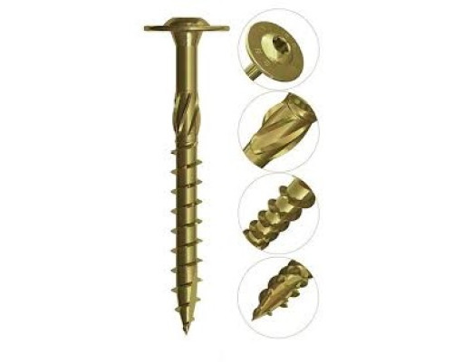 Конструкционный жёлтый саморез TORX40 8,0х140 мм применяется при монтаже деревянных конструкций, лестниц, стропил, фасадных панелей, требующих особо прочного соединения. Также используется для фиксации ламинированного ДСП, пластика, террасных досок и т.п. Подходит для любого сорта древесины. Оснащён потайной головкой, шлицем «звёздочка», самонарезающим концом особой геометрии с эффектом "буравчика" и фрезерующими рёбрами (раззенковкой).