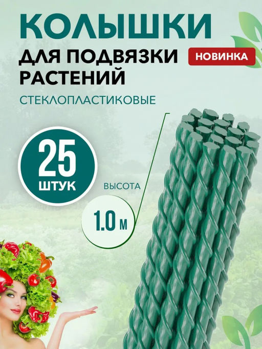 Колышки для подвязки растений стеклопластиковые. диаметром 8 мм упаковка 25 шт, длина - 100 см. Состав: композитный стеклопластик (стеклоровинг) + эпоксидная смола. Значительный срок службы в сравнении с деревянными. Используются для подвязки томатов, перцев, цветов, кустарников. Способ использования: Воткнуть в землю колышек на глубину 30-40 см, привязать саженец к колышку. Способ хранения: Убирать на зимний период в место, защищенное от попадания прямых солнечных лучей. Опоры для растений из композитного (стеклопластикового материала) отлично подходят для подвязки любых растений, помидоров, огурцов, цветов и кустарников. Кустодержатель выполнен из прочного материала. Не ржавеют, не ломаются, обладают длительным сроком службы, красиво смотрятся на садовом или огородном участке. Их вес в 8-9 раз меньше металлических опор и в 2-3 раза легче деревянных опор для растений, их легко перевозить и переносить. Срок службы композитных опор - 80 лет. Они не подвержены гниению и действию удобрений и ядохимикатов.