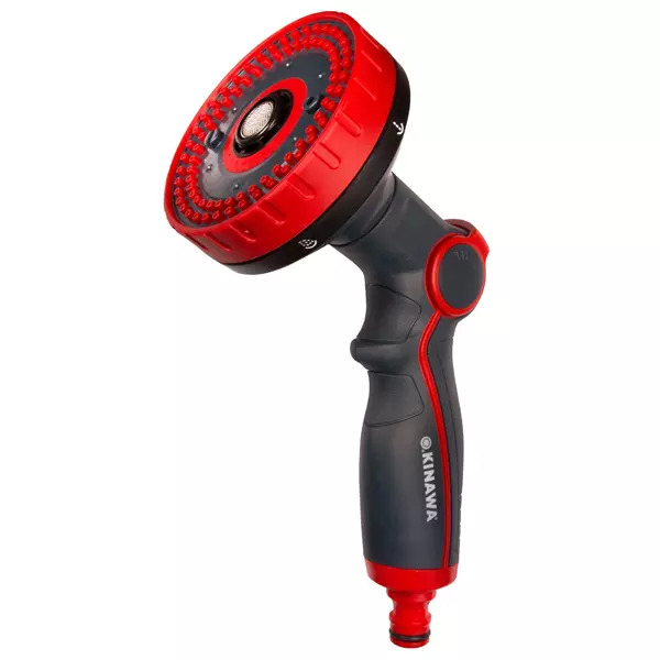 Пистолет-распылитель OKINAWA 6 режимов пластиковый имеет регулировку напора распыления, которая позволяет эффективно расходовать воду. ABS-пластик. 6 режимов распыления: Плоская струя (FLAT), Жёсткая струя (струйный) (JET), Душ (SHOWER), Туман (MIST), Сочащийся (FLOOD), Центральный (CENTER).