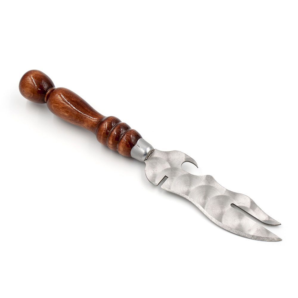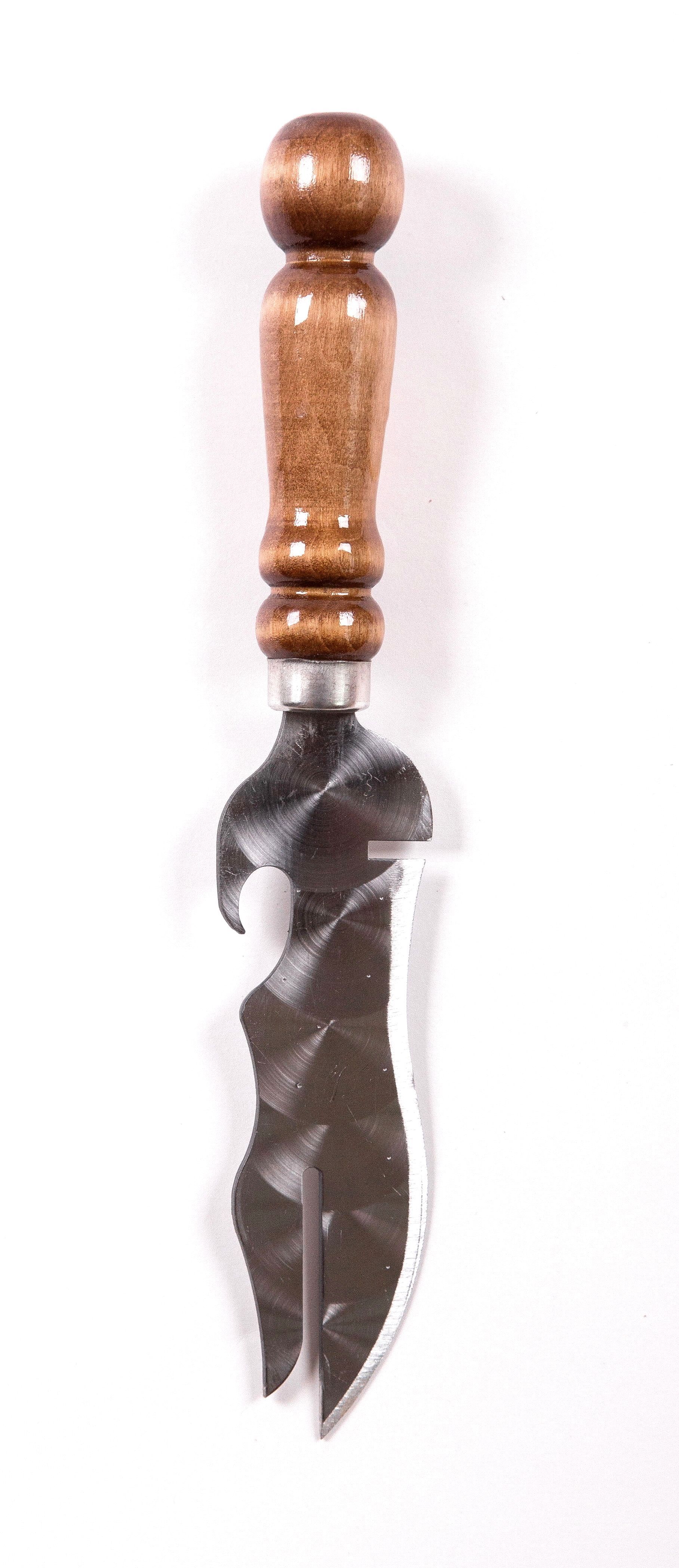 Нож предназначен для нарезки продуктов, в том числе мяса, перед приготовлением на шампурах и для разделки готового шашлыка.