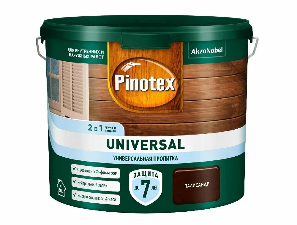 Универсальная пропитка для древесины Pinotex Universal 2 в 1 – идеальное решение для защиты и ухода за древесными изделиями. Эта пропитка для дерева предназначена для наружных работ и обеспечивает надежную защиту ваших деревянных конструкций от неблагоприятных погодных условий. Пропитка для дерева Pinotex Universal 2 в 1 обладает водоотталкивающими свойствами, что делает её незаменимой в условиях повышенной влажности. Применение данной пропитки позволяет значительно продлить срок службы деревянных элементов, предотвращая проникновение влаги и развитие плесени, гнили и грибка. Уникальная формула «2 в 1» позволяет использовать пропитку как самостоятельное средство для обработки древесины, сохраняя её природную текстуру и красоту. Пропитка по дереву в цвете "Орегон" придаст древесине насыщенный оттенок, подчеркнув её естественный рисунок. Универсальная пропитка для дерева Pinotex Universal 2 в 1 легко наносится и быстро высыхает, что значительно ускоряет процесс обработки. Она идеально подходит для использования на фасадах домов, изгородях, садовой мебели и других наружных деревянных конструкциях. Благодаря удобству в применении и высокому качеству, пропитка по дереву Pinotex станет вашим незаменимым помощником в уходе за древесиной.