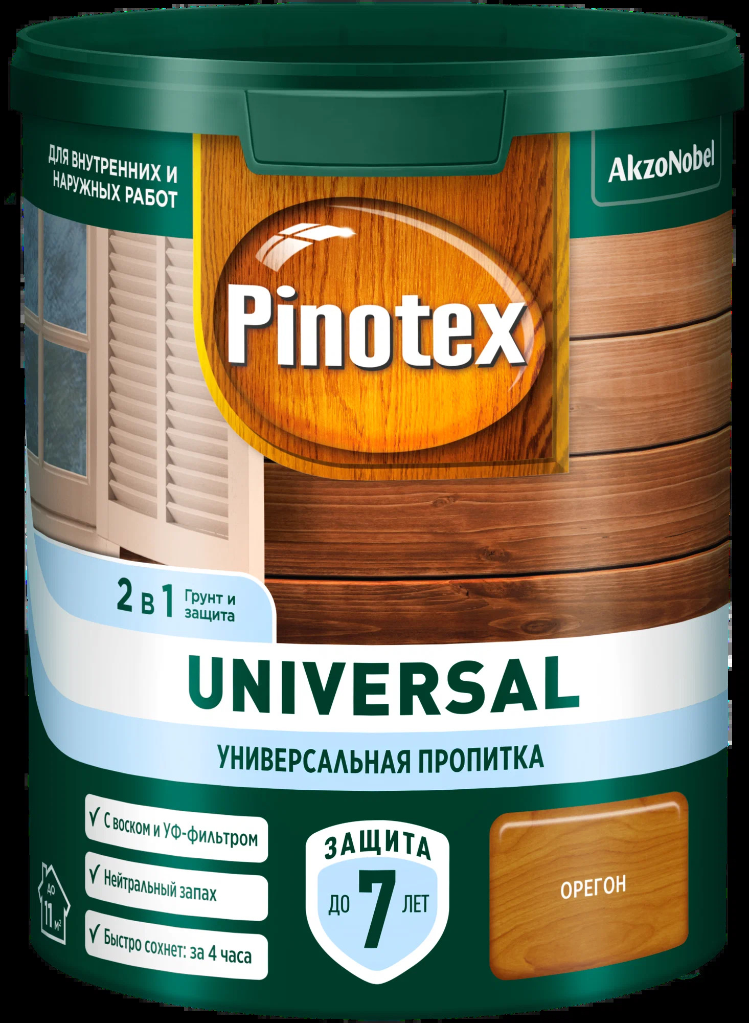 Универсальная пропитка для древесины Pinotex Universal 2 в 1 – идеальное решение для защиты и ухода за древесными изделиями. Эта пропитка для дерева предназначена для наружных работ и обеспечивает надежную защиту ваших деревянных конструкций от неблагоприятных погодных условий. Пропитка для дерева Pinotex Universal 2 в 1 обладает водоотталкивающими свойствами, что делает её незаменимой в условиях повышенной влажности. Применение данной пропитки позволяет значительно продлить срок службы деревянных элементов, предотвращая проникновение влаги и развитие плесени, гнили и грибка. Уникальная формула «2 в 1» позволяет использовать пропитку как самостоятельное средство для обработки древесины, сохраняя её природную текстуру и красоту. Пропитка по дереву в цвете "Орегон" придаст древесине насыщенный оттенок, подчеркнув её естественный рисунок. Универсальная пропитка для дерева Pinotex Universal 2 в 1 легко наносится и быстро высыхает, что значительно ускоряет процесс обработки. Она идеально подходит для использования на фасадах домов, изгородях, садовой мебели и других наружных деревянных конструкциях. Благодаря удобству в применении и высокому качеству, пропитка по дереву Pinotex станет вашим незаменимым помощником в уходе за древесиной.